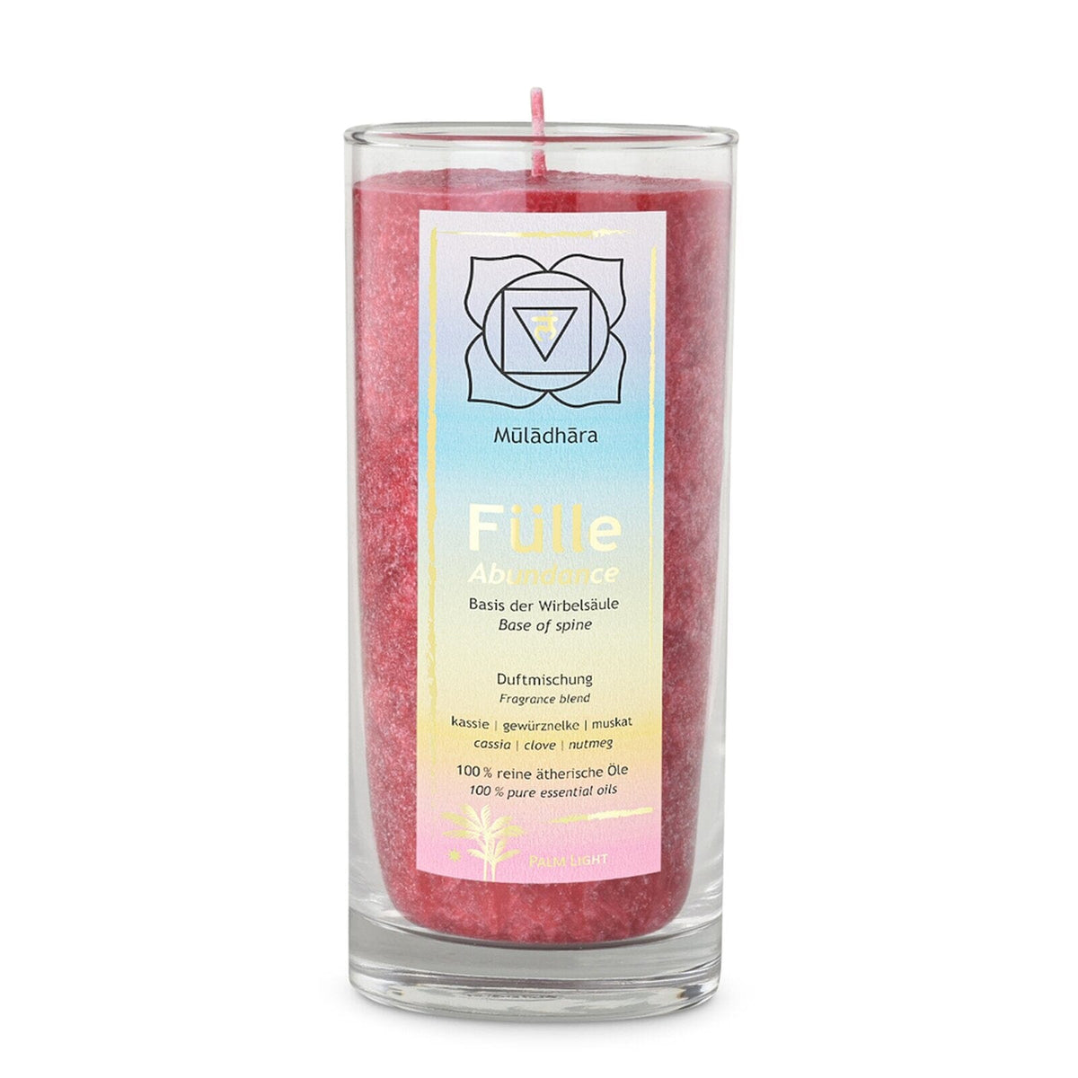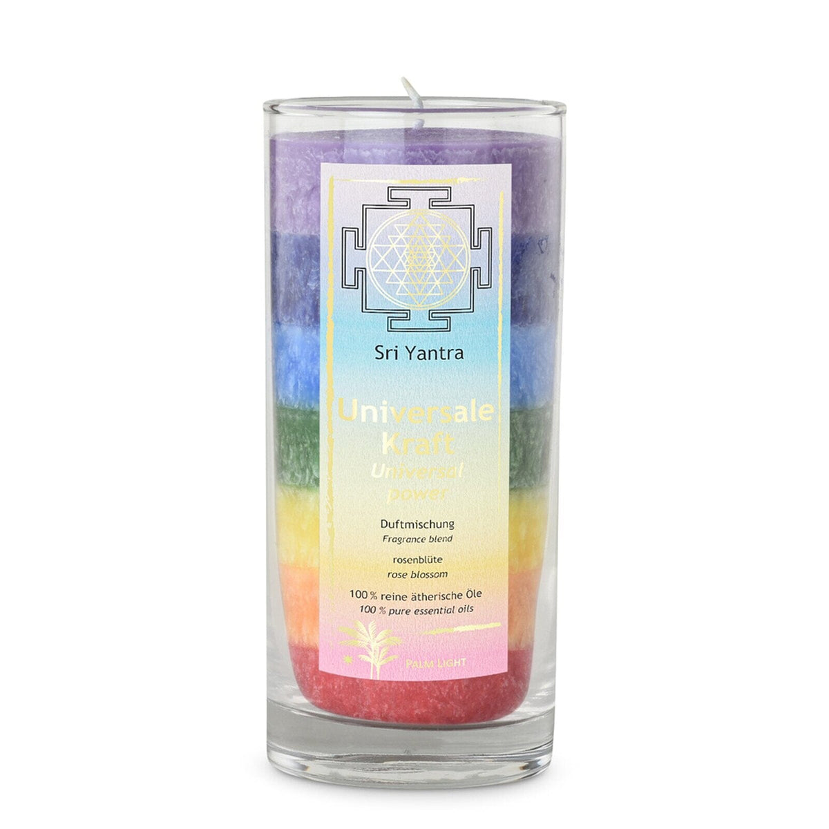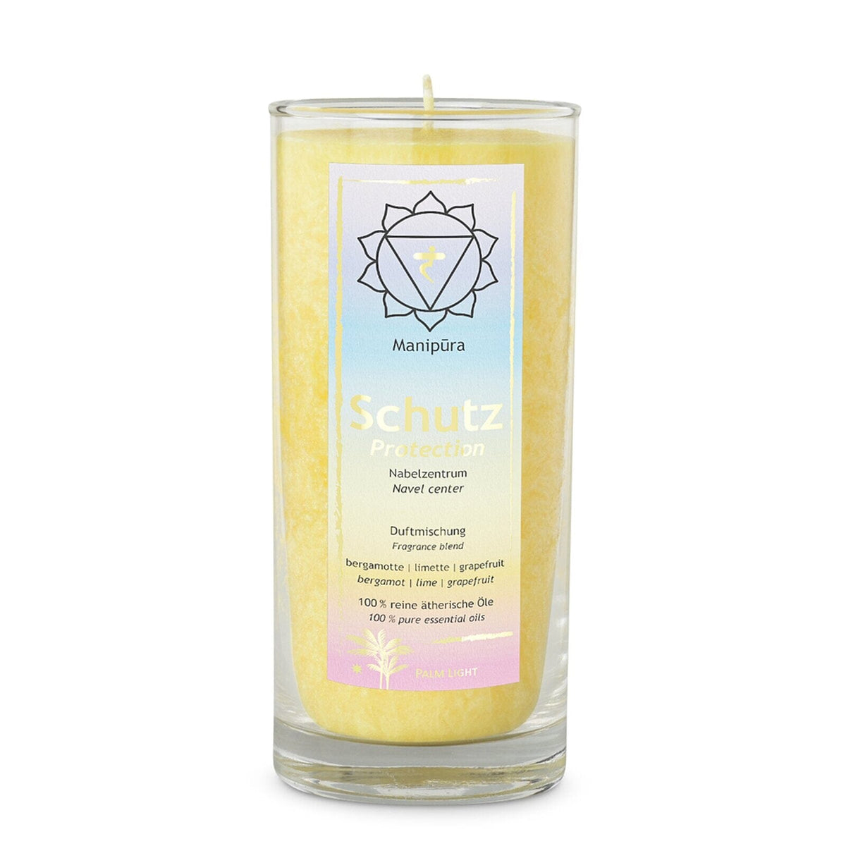 Experience the harmonizing power of the Chakra scented candle. This beautiful candle made from natural palm wax exudes a calming fragrance and creates a relaxing atmosphere during your meditation practice or relaxing moments at home.