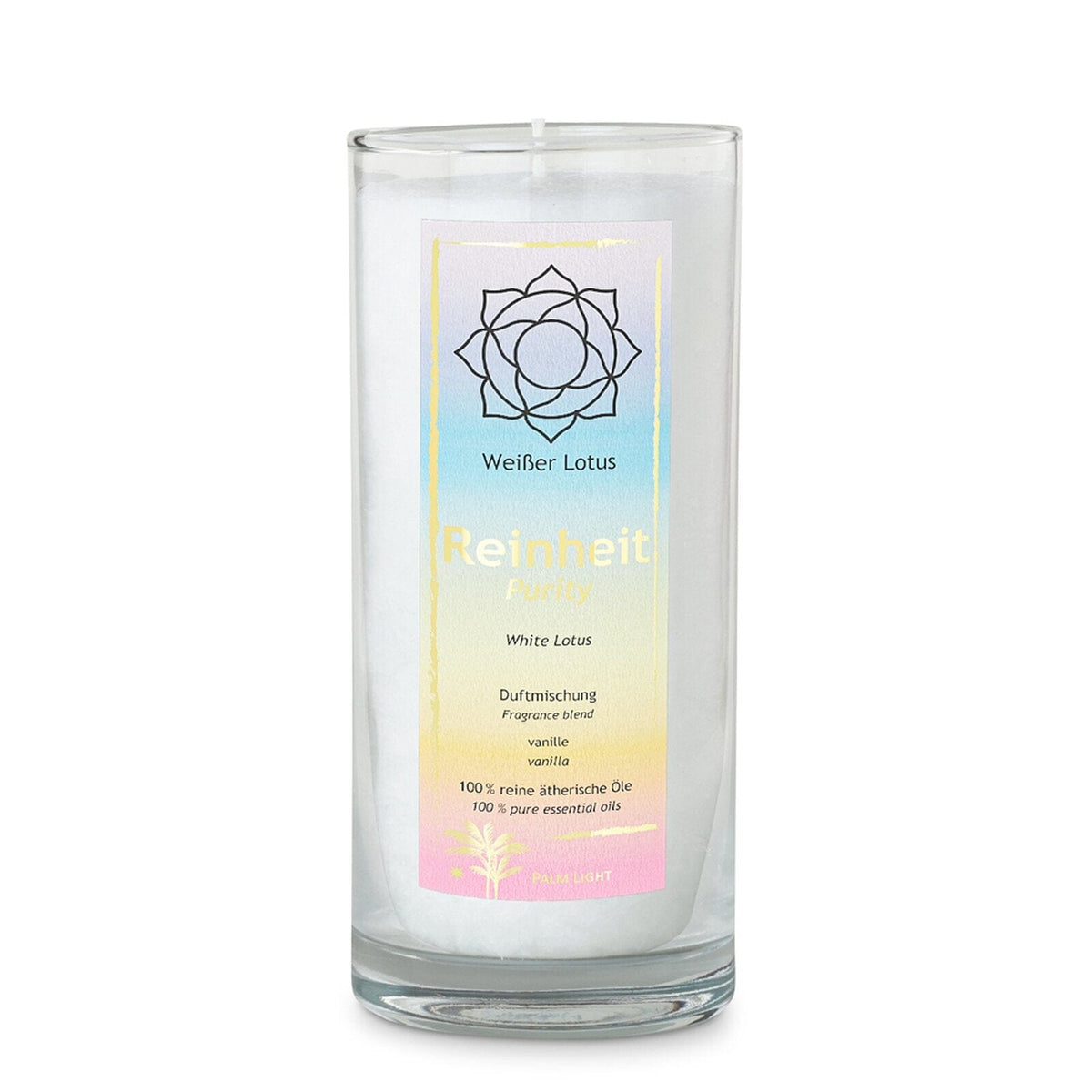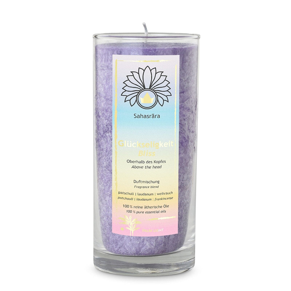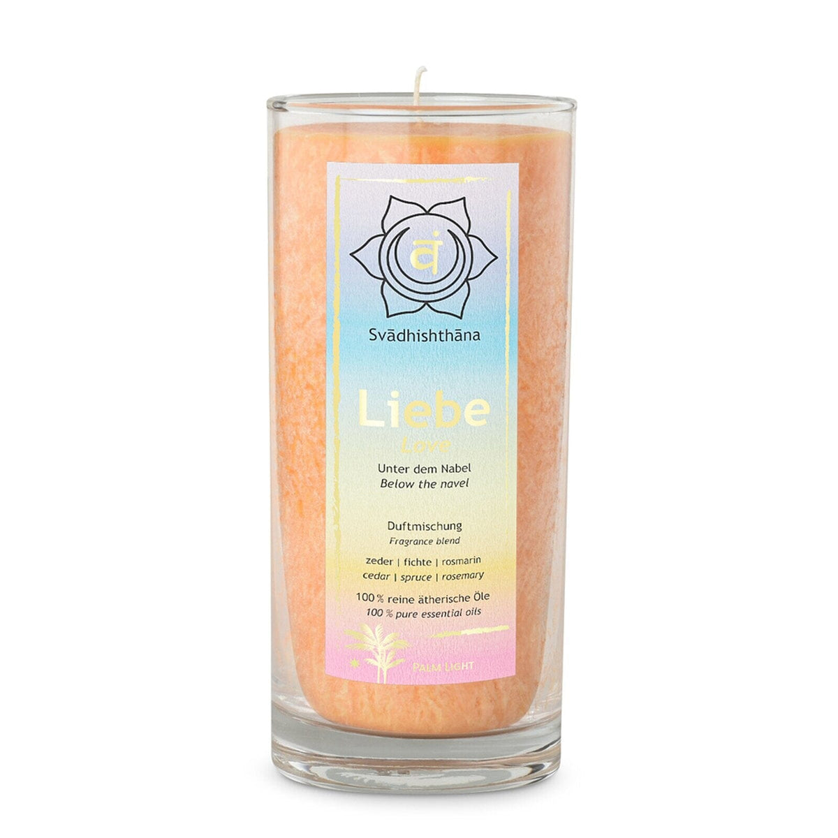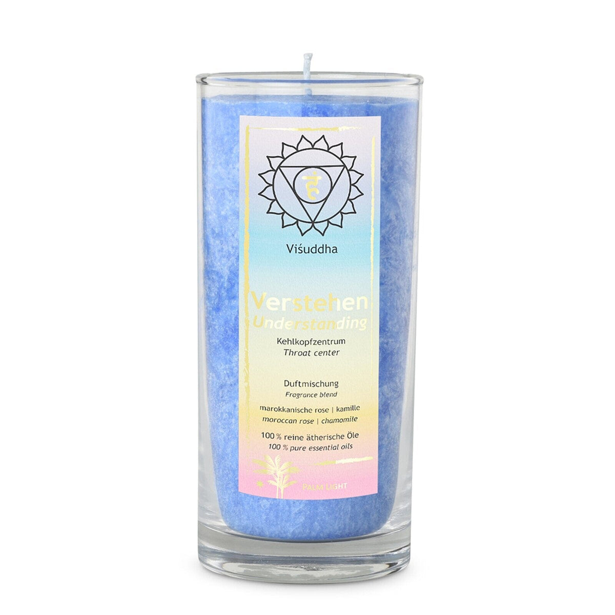 Experience the harmonizing power of the Chakra scented candle. This beautiful candle made from natural palm wax exudes a calming fragrance and creates a relaxing atmosphere during your meditation practice or relaxing moments at home.